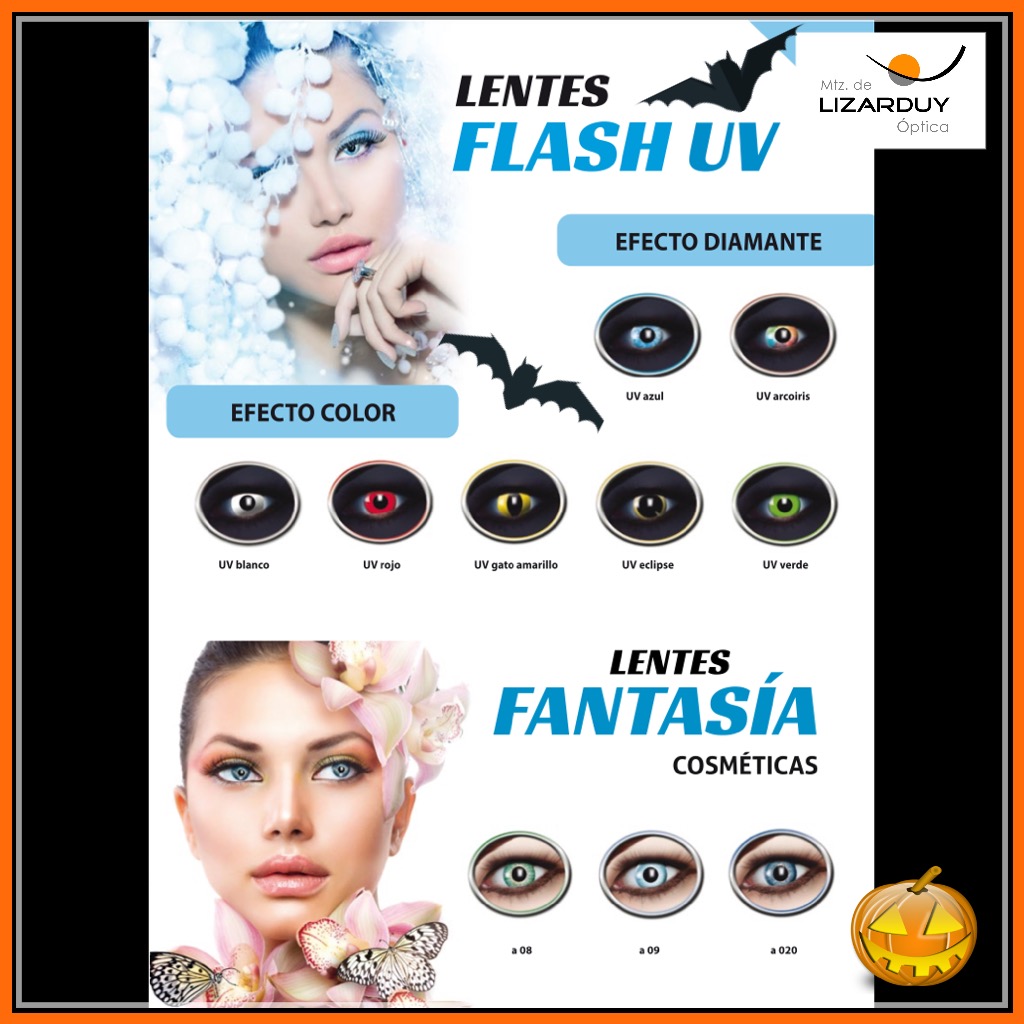 Ojos de gato, ojos de sangre, ojos de hombre lobo, o si lo prefieres, simplemente cambia de color tus ojos por un día. Estas lentes de contacto (lentillas) son desechables con la novedad de que son de un año de duración, por lo que puedes también usarlas en carnaval, pero siempre con un buen mantenimiento y cuidado. En Óptica Mtz. de Lizarduy por sólo 30 Euros te daremos las pautas para un buen uso de ellas, enseñándote además a poner y quitar.